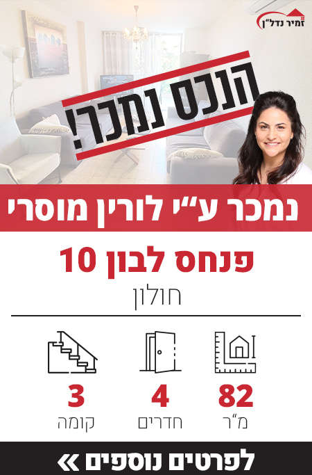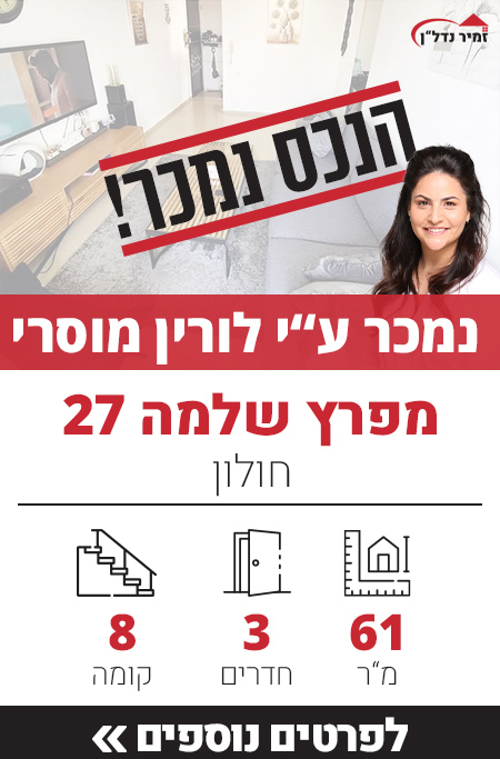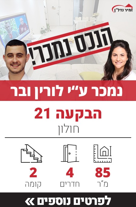 שתפו את פרטי הנכס Share on whatsapp Share on facebook Share on email Previous Next דירה למכירה רבינוביץ 38 חולון למכירה בבלעדיות משרד התיווך זמיר נדל"ן. ✅ 5 חדרים מרווחת שעברה שיפוץ כללי.✅ מרפסת שמש קטנה של 6 מ"ר.✅ קומה 1 עם שתי מעליות.✅ חניה בטאבו.✅ דירת עורף פתוח ושקט, עם כיווני שמש דרום – […]