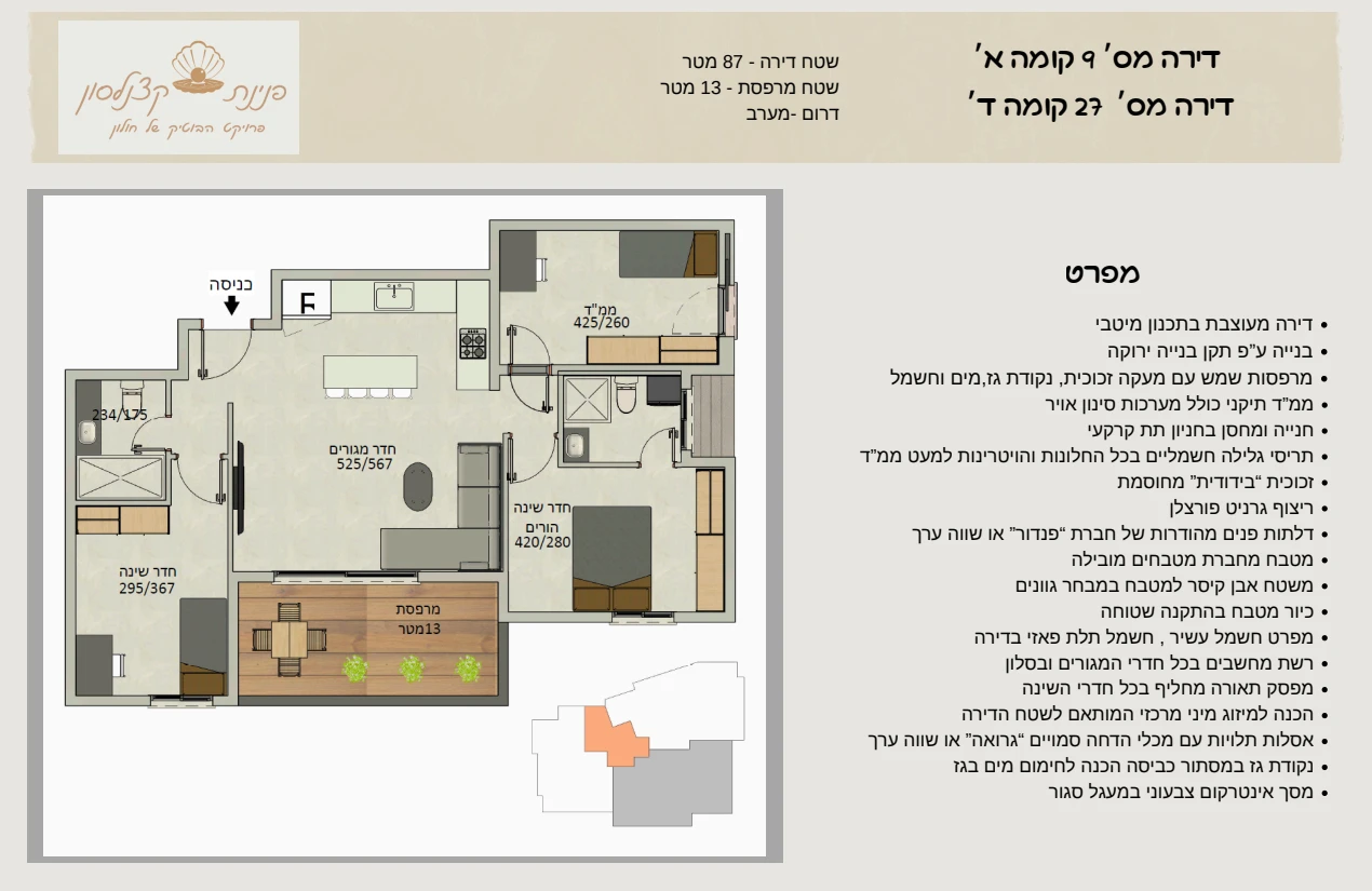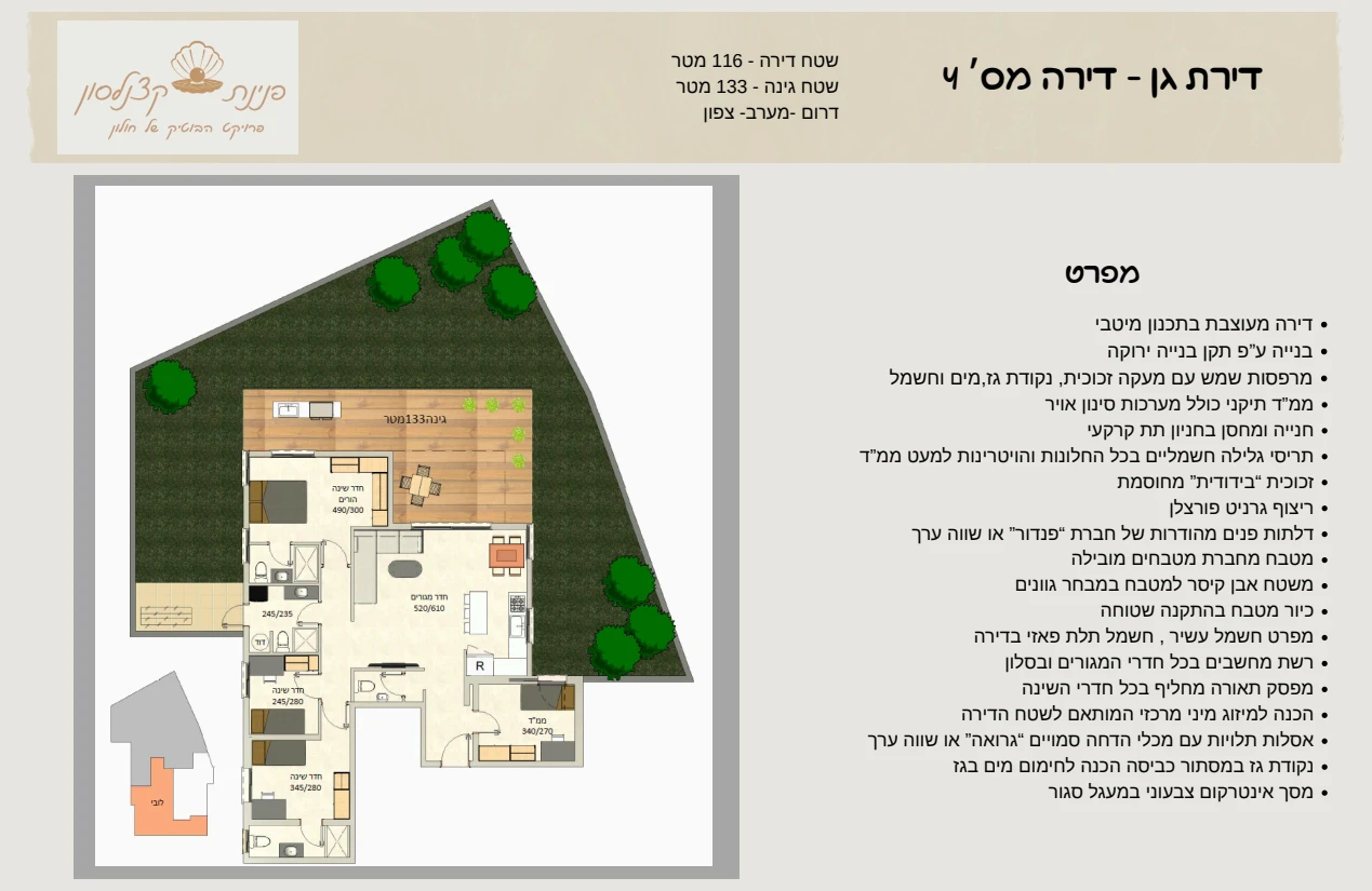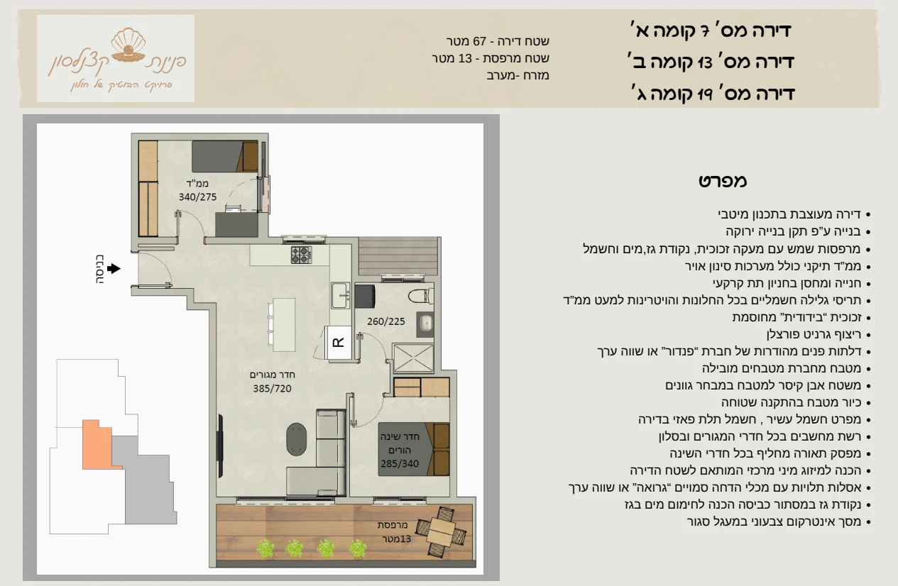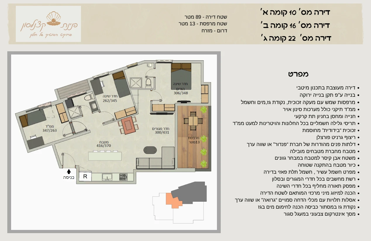 – מרפסות שמש עם מעקה זכוכית, נקודת גז, מים וחשמל