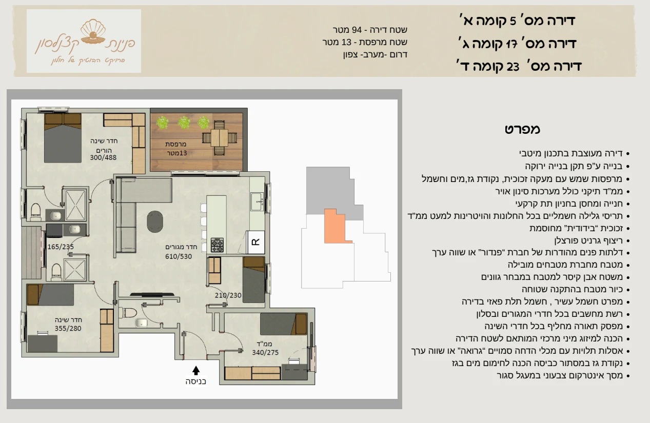 – הכנה למזגן מיני מרכזי בכל חדרי הדירה