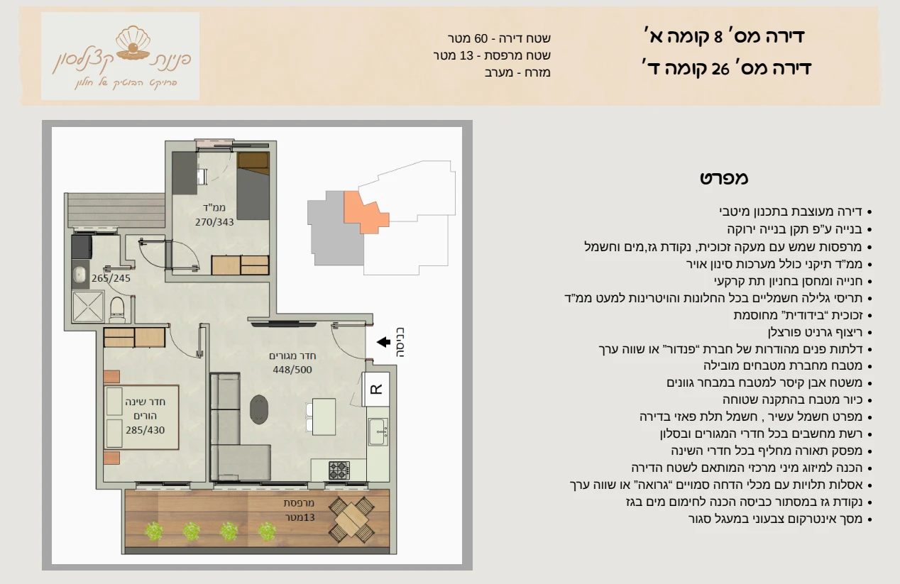 פרויקט מגורים חדש בלב שכונת שיכון ותיקים המבוקשת בחולון, סמוך ליציאה לנתיבי איילון , קרוב לתחנת הרכבת הקלה ולתוואי המטרו.